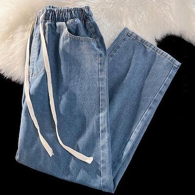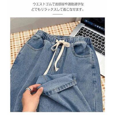 デニムパンツ ウエストゴム レディース ストレート ゆったり 秋 夏 春 冬 ワイドパンツ 大きいサイズ 体型カバー 着痩せ ボトムス ジーンズ ジー