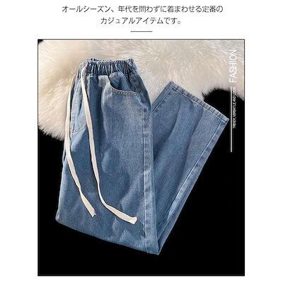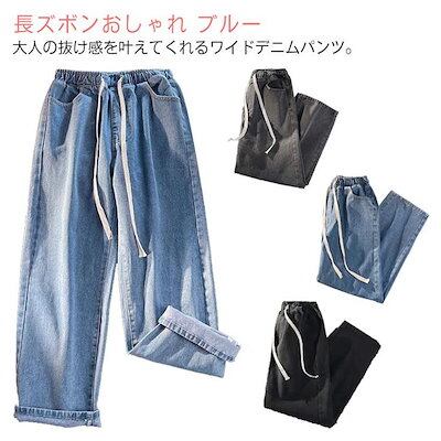 デニムパンツ ウエストゴム レディース 大きいサイズ ストレート ゆったり 秋 夏 春 冬 ワイドパンツ 体型カバー 着痩せ ボトムス ジーンズ ジー