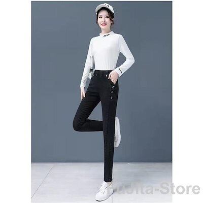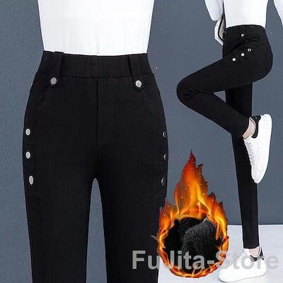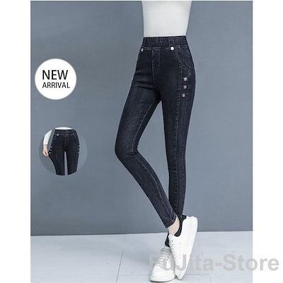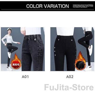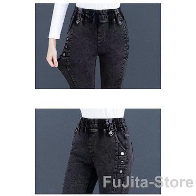 ジーンズ ウエストゴム レディース デニムパンツ ボトムス ストレッチ 伸縮 無地 おしゃれ 大 春秋冬 裏起毛 暖かい ロング丈