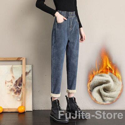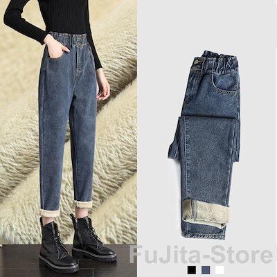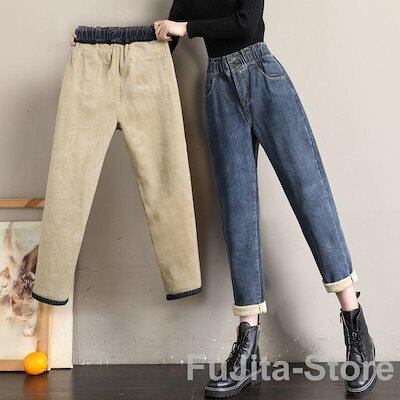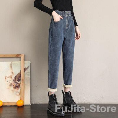 デニムパンツ レディース 裏起毛 暖かい ワイドパンツ おしゃれ ゆったり 太め 大 秋冬 ストレート ボトムス ジーンズ ジーパン