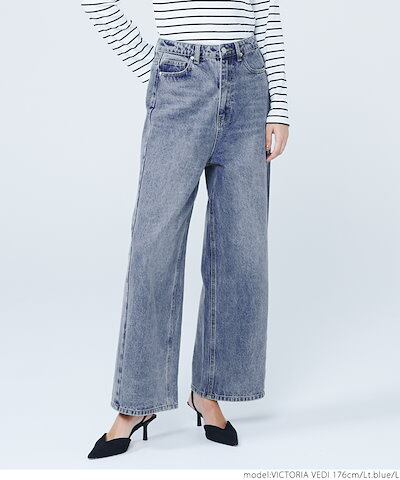cocaWEB限定値下げ ヴィンテージライクセミワイドデニム レディース ロング丈 カジュアル Gパン ジーンズ ワイドパンツ ハイウエスト シンプル きれいめ 春 夏 秋 冬 送料無料/メール便不可