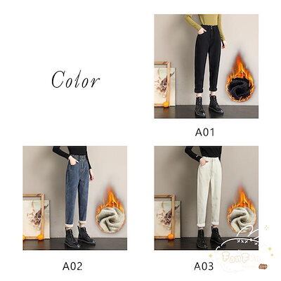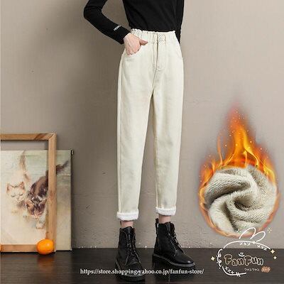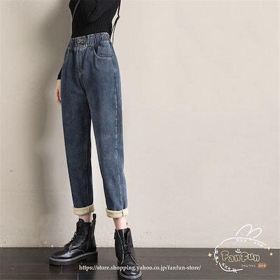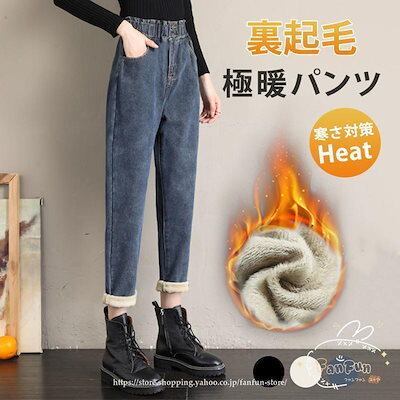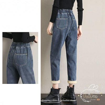 デニムパンツ レディース ジーンズ 裏起毛 裏ボア ワイドパンツ 厚手 ハイウエスト ゴム 秋冬 ジーパン 保温 防寒 暖かい ゆったり 通勤 通学