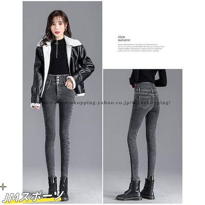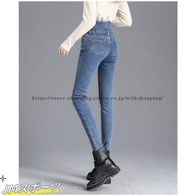 デニムパンツ ハイウエスト スキニーデニム レディース 伸縮 美脚 細め 韓国ファッション 秋冬 おしゃれ ロング丈 裏起毛 暖かい