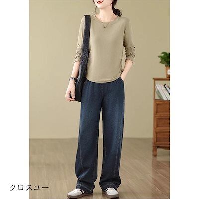 デニムパンツ レディース 秋冬 ボトムス ズボン ワイドパンツ ジーパン ウエストゴム ストレッチ ハイウエスト 伸縮性あり すっきりと履けるデザイン