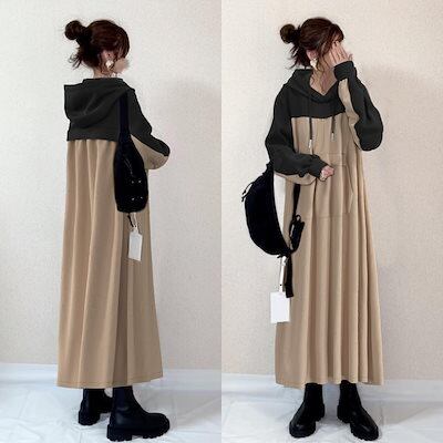 パーカーワンピースワンピース レディース 30代 40代 ロングワンピース新作 長袖 ワンピース