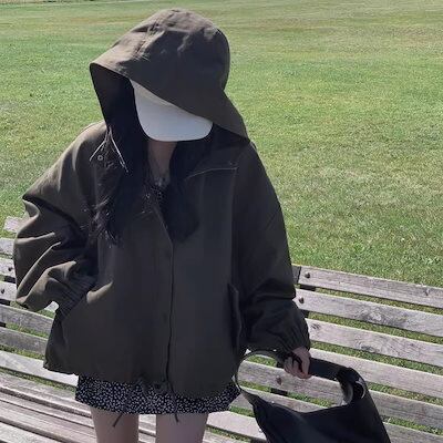 長袖連帽ジャケットショートジャケットレディース秋アウター無地ショートジャケット長袖コートカジュアル