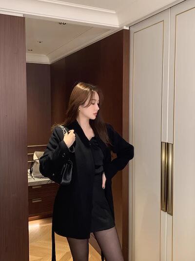 コート韓国風コートミディアム秋冬長袖Vネックコートウエストをしまって着やせしたコート