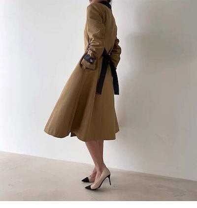 長袖パーカーレディースコートコート秋冬レトロ秋コートバンドウエストをしまって着やせコートカジュアル広々