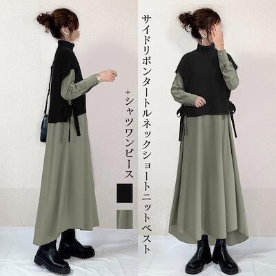 スカートスーツレディースノースリーブセーターアウター長袖シャツスカートスーツ韓国式冬2枚セット通勤レディーススーツスカートゆったり大人