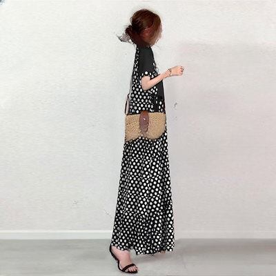 ワンピース レディース 夏 ドットワンピースロング丈 ワンピース 韓国風 大人ゆったり 通勤OL 30代 50代