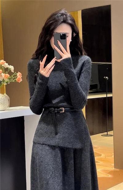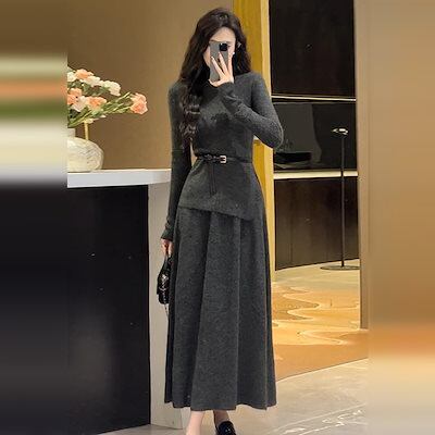 【2枚購入で 2oo円OFF!】人気なリプニット 二点セット 秋冬 新作 セーター+スカート おしゃれ 気質 レディースセットアップ カジュアルゆったり 通勤 ニット アウター 上下セット ニット