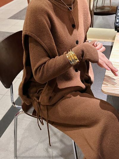 【2枚購入で 2oo円OFF!】人気なリプニット 3点セット 秋冬 新作 セーター ニット 上下セット レディースセットアップ ニット アウター