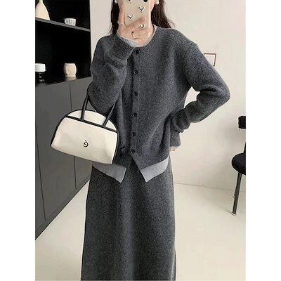 【2枚購入で 2oo円OFF!】人気なリプニット 秋冬 新作 セーター ニット フェイクレイヤード 上下セット 二点セット レディースセットアップ ニット アウター