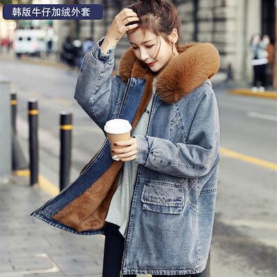 AWアウター新作 おしゃれ 流行り ゆったり百掛けデニム トップス アウター ショット丈 裏起毛 厚手 中綿コート 大きいサイズ ライダース ダウンジャケット 裏起毛ファッション