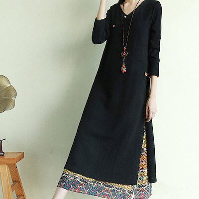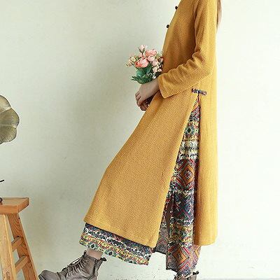 ワンピース エスニック風ワンピース ワンピ ロングワンピ レディース 長袖 重ね着風 手作りボタンフ