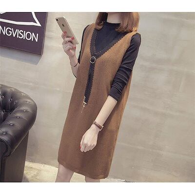 サロペットワンピース レディース 2点セット 膝上ワンピース ジャンパースカート プルオーバー vネ