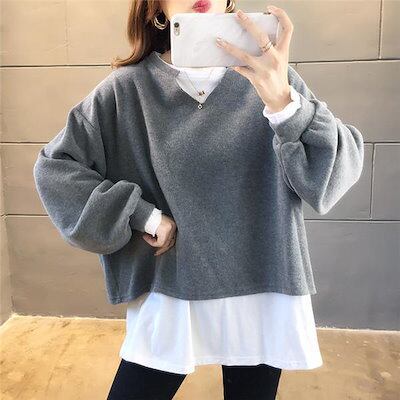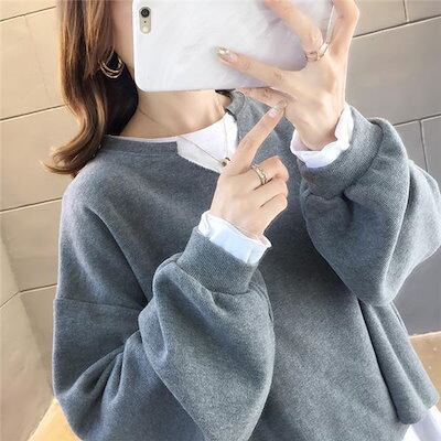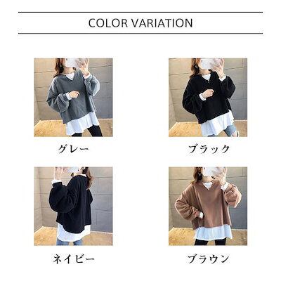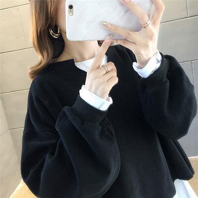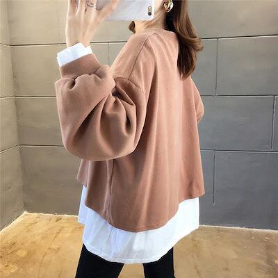 パーカー レディース スウェットトレーナー 着重ね プルオーバー パフスリーブ トップス 長袖 ゆったり レイヤード 秋 カジュアル 無地 きれいめ