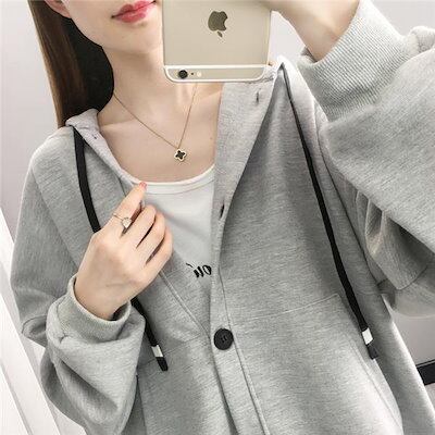 パーカー レディース フード付き 秋冬トップス 体型カバー 前開き ボタン ルームウェア ウォーキング 長袖 カジュアル 韓国風 スウェット 着痩せ