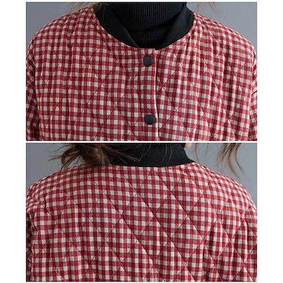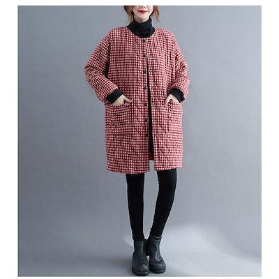 新入庫 キルティングコート ロングコート チェック柄 レディース ロング 軽量 カーディガン ノーカラー ボタン留め コーデ ポケット有り 秋冬 ゆったり カジュアル