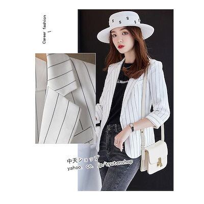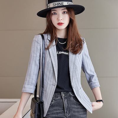 超目玉新品 テーラードジャケット 春秋 レディース ジャケット 七分袖 ストライプ柄 アウター 韓国風 着痩せ 気質 オシャレ ゆったり コーデ 新作通勤仕事結婚式七五三