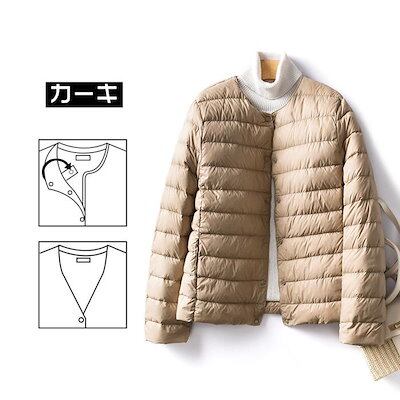 ダウンコート ショート丈 レディース 2typeネック 丸首 Vネック ダウン ジャケット アウター トップス 無地 おしゃれ カジュアル