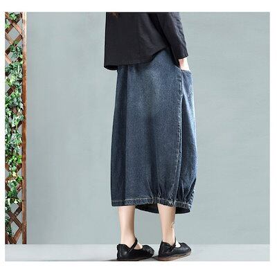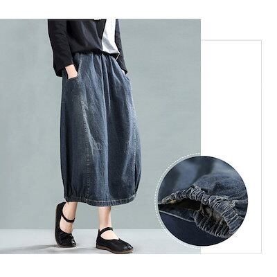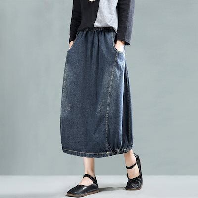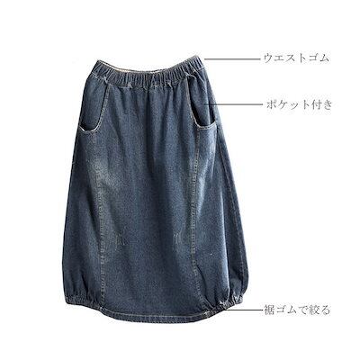 デニムスカート バルーンスカート レディース ミモレ丈 ロング丈 裾ゴムロングスカート ハイウエス