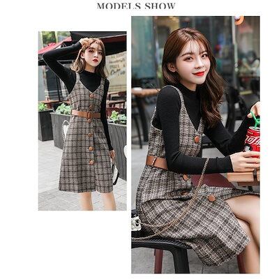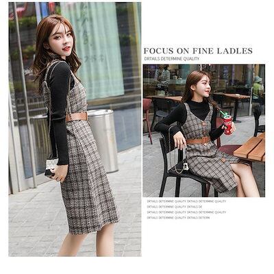 セットアップ レディース 秋 トップス ワンピース キャミソール オールインワン 長袖 無地 2点セ