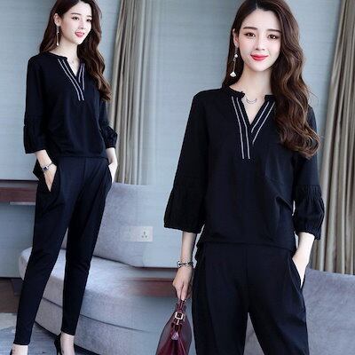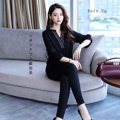 セットアップ レディース 上下セット 2点セット トップス 七分丈ブラウス きれいめ ハーレムパンツ