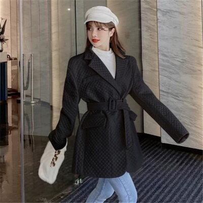 中綿アウター レディーストップス 中綿コート 中綿トップス ロング カジュアル 暖かい 防寒 冬 ゆったり 中綿スーツ オシャレ ウェストベルト