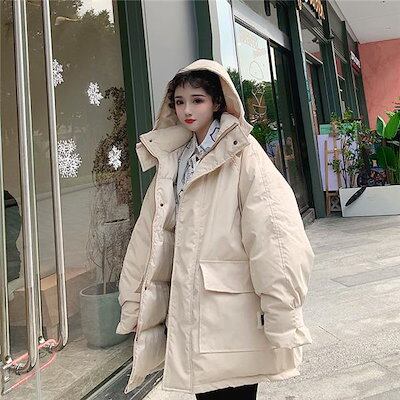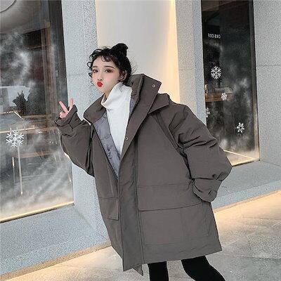 中綿アウター レディーストップス 中綿コート ロング カジュアル 暖かい 防寒 冬 ゆったり フード付き カジュアル オーバーサイズ