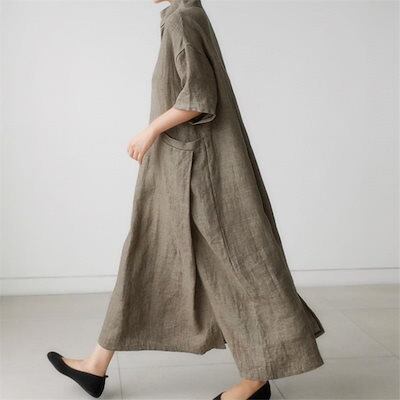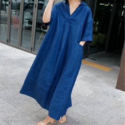 ゆったり/大きいサイズ/シャツワンピース/学生/コットン/ドールワンピース/ファッション/薄手/ロング/ひざ丈/ボトムワンピース カップ 付きインナー
