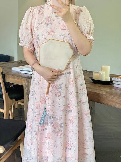 【ぽちゃまに】 夏 中華風 ワンピース 大きいサイズ レトロ レース 体型カバー 長/短2タイプ チャイナドレス 柄ワンピース メガ割