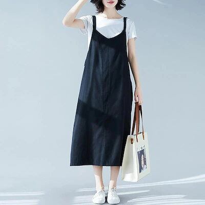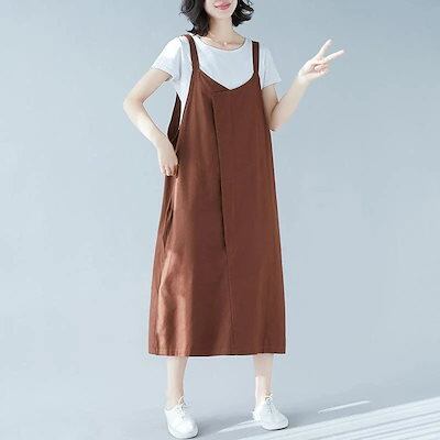 パーティードレスドレスリネンワンピース夏 韓国 ゆったり カジュアル 綿麻 サロペットスカート おしゃれ 百掛け ロング丈 着痩せ
