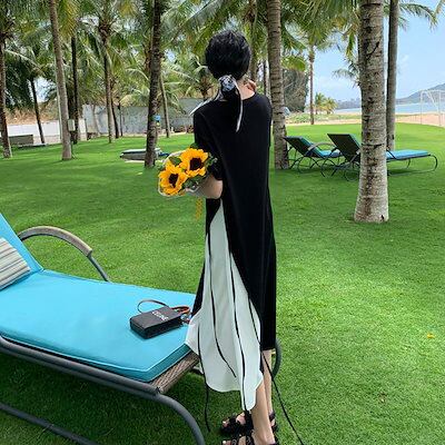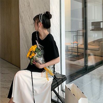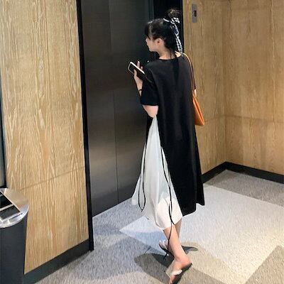 夏 新作 Tシャツ ワンピース 半袖 ワンピース 切り替え 高級感 気質 百掛け 着やせ 大きいサイズ ゆったり