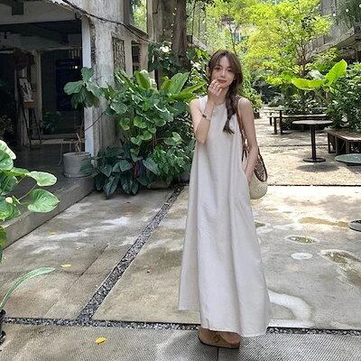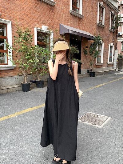 ヘビロテ! キャミワンピ ロングワンピース 日韓ファッション ノースリーブワンピース レディース 高級感 おしゃれ シャツワンピース 夏 ゆったり 体型カバー? ドレス