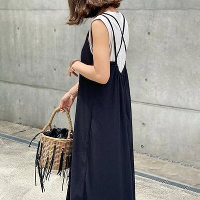ヘビロテ! キャミワンピ ノースリーブ リネンワンピース 日系 袖なしロングマキシ丈ワンピ 夏 薄手キャミワンピ 韓国ファッション 体型カバー ロングワンピース ゆったりサスペンダ/ドレス母の日