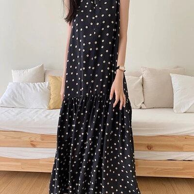 ヘビロテ! キャミワンピ リネンワンピース ワンピース 夏 ワンピース ドット 韓国 ワンピース ゆったり百掛けロングワンピース シャツワンピース 気質 着痩せドレス 韓国ファッション母の日