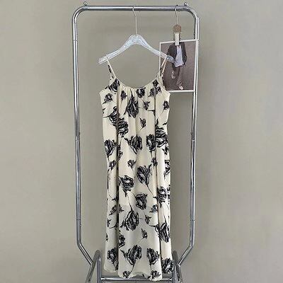 ヘビロテ! キャミワンピ 日系レトロ 花柄 キャミワンピース ノースリーブ ロングワンピース 韓国ファッション 花柄ワンピース 夏 着痩せドレス母の日