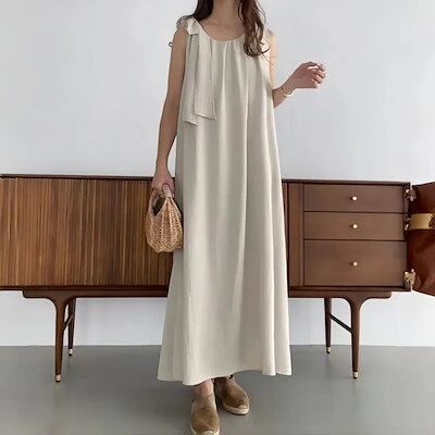 ヘビロテ! キャミワンピ 夏 日系 ワンピース ノースリーブ 大きいサイズ タンクトップ ゆったり 綿 デザイン 肩膀? 流行り ロング スリット 体型カバー Vネック 通勤 ンピース