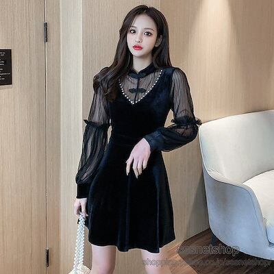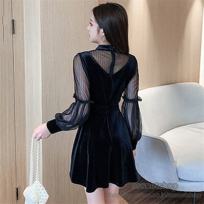 ミニ丈ドレス ワンピース レディース 長袖チュール袖 パーティードレス Aラインワンピース ミニ丈 オシャレ 結婚式 二次会 お呼ばれ パーティーsssnetshop