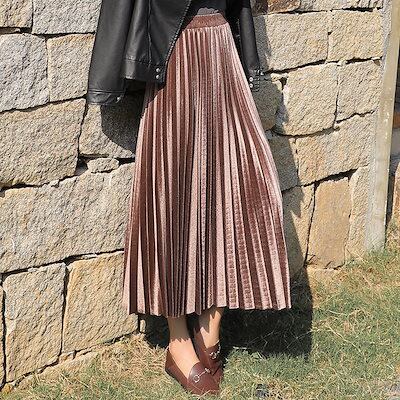 2023 スカート 人気のベロア素材 彡ベロアスカート プリーツ フレア Aライン ゴム トレ