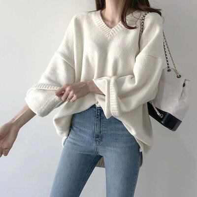 2023 ブラウス 長袖 カシミヤタッチニットベスト新作怠惰風 VネックニットゆったりとしたトップTシャツ韓国風コリ ブラウス トップス レディース