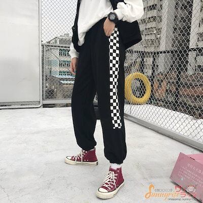 レディース ダンス 衣装 ヒップホップ HIPHOP 無地チェック 切り替え パンツ 原宿系 奇抜