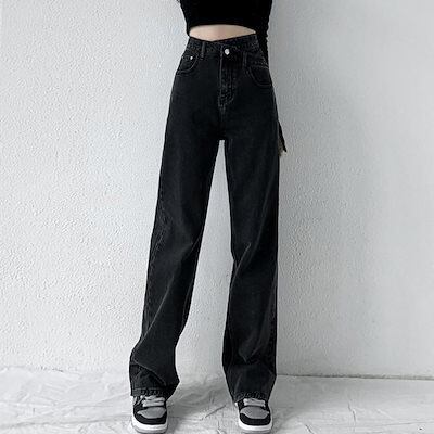 デニムパンツ レディース ジーンズ ストレートデニム ウエストレイヤード風デニムパンツ