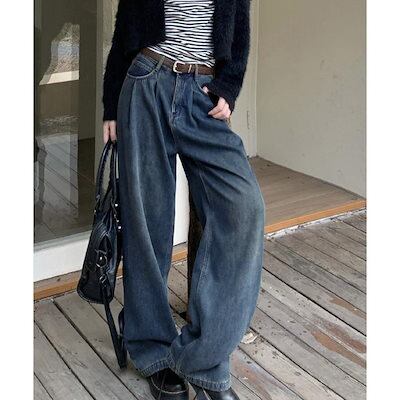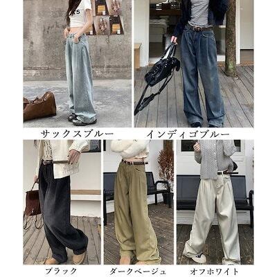 デニムパンツ レディース ジーンズタックワイドデニムパンツレディース韓国風