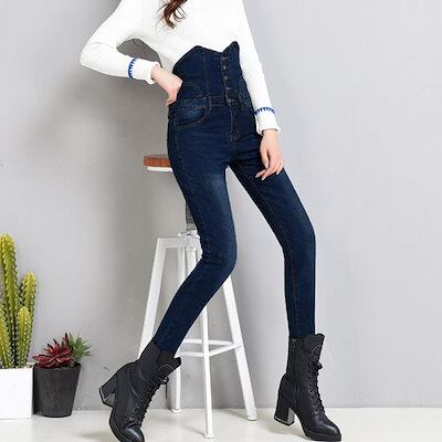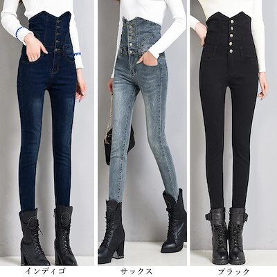 デニムパンツ レディース ジーンズ韓国デニム ハイウエスト スキニーパンツ