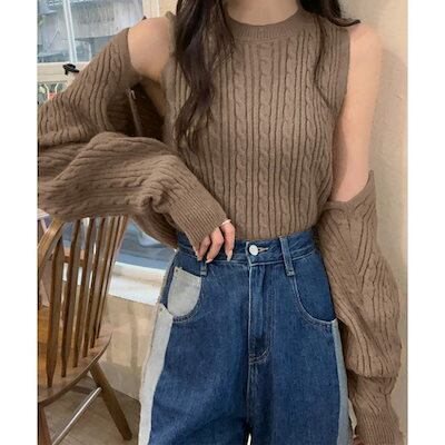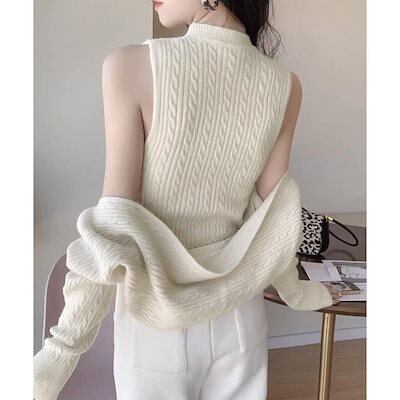 ニットカーディガン タンクトップ セット ニットカーディガン 秋冬 リブニット