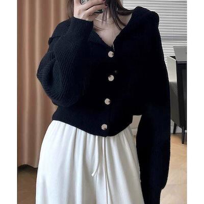 ニットカーディガン 秋冬 リブニット フード付きニットカーディガン ショート丈