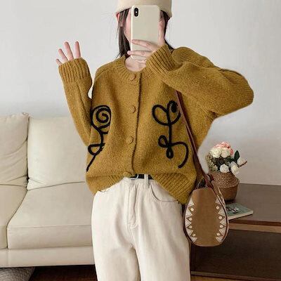ニットカーディガン 秋冬 リブニット 中厚手ニットカーディガン ニットセーター