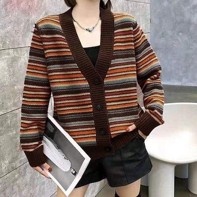 ニットカーディガンレディース韓国トップス ニットカーディガン 秋冬 リブニット